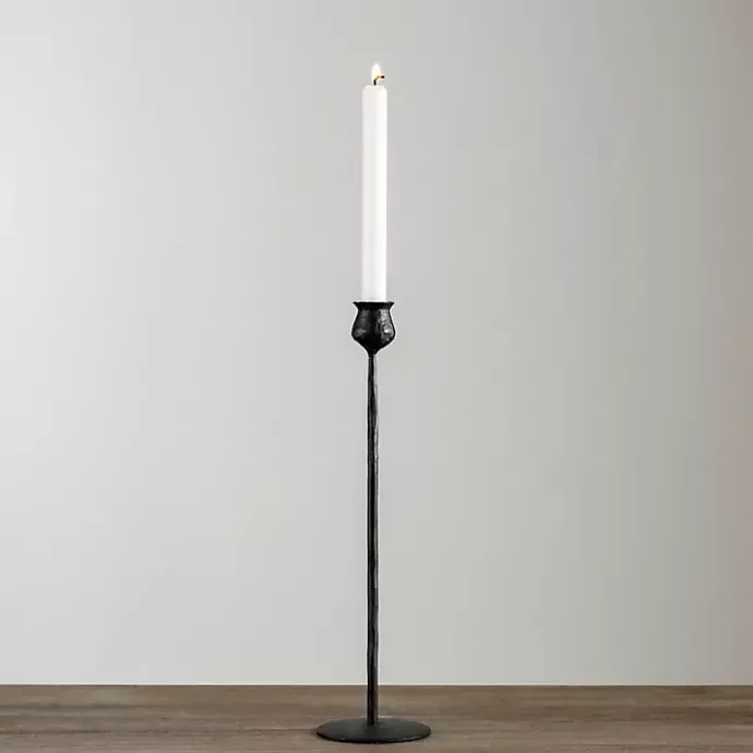 Elevate any space, from your mantel to your dining table, with this Black Textured Taper Candle Holder. Its simple, understated style will give any candle a classic look!