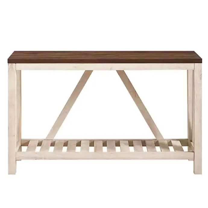 Make your house feel like a home with this lovely Walnut and Whitewash A-Frame Console Table. It will match your farmhouse decor perfectly! It’s the perfect place to display your candle holders, hurricanes, and favorite statues!