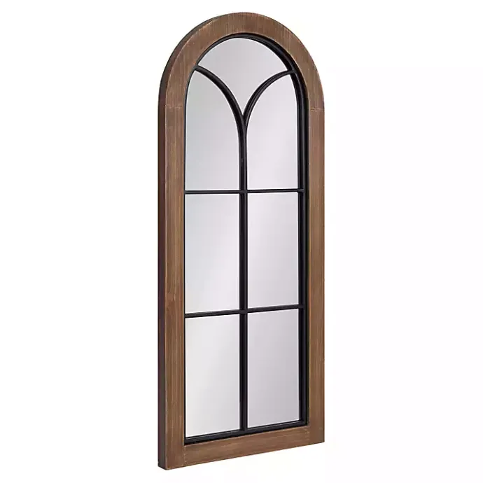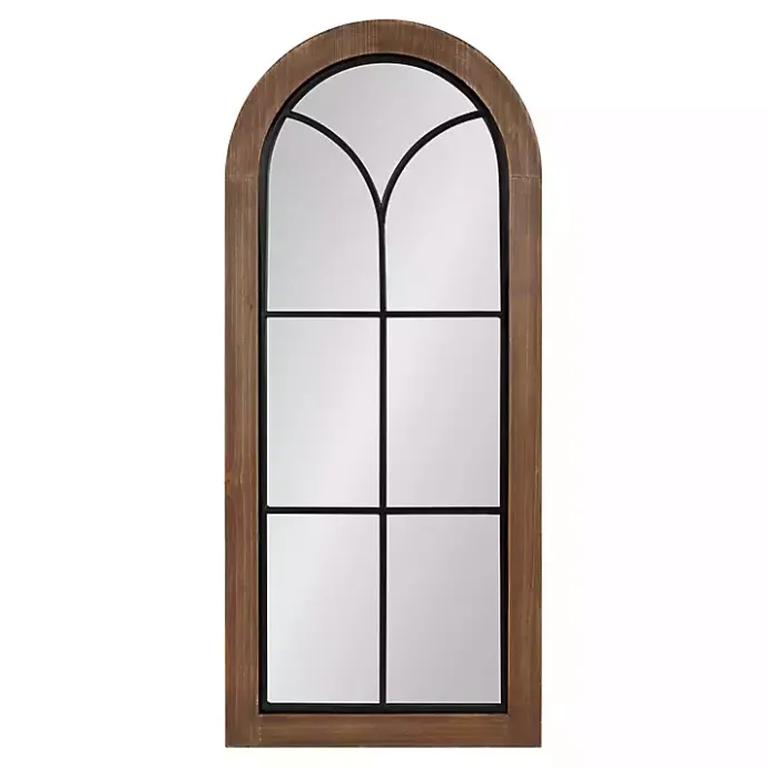 Keep in theme with your traditional farmhouse style using this Brown Windowpane Arch Geoffrey Mirror. The decorative overlay will lend a sophisticated touch to any display.