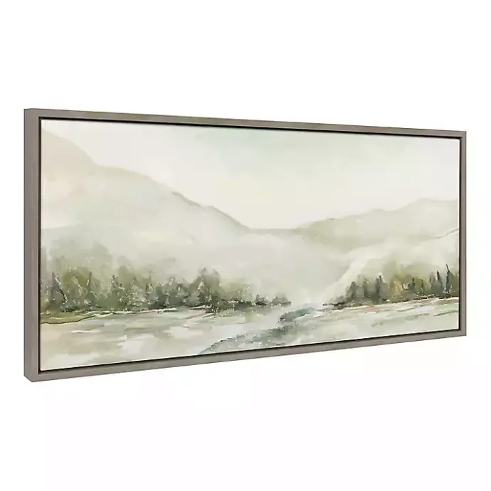 Wander through a winter wonderland with this Winter Mountain Landscape Framed Canvas Art Print. It captures the quiet beauty of a snow-covered landscape!