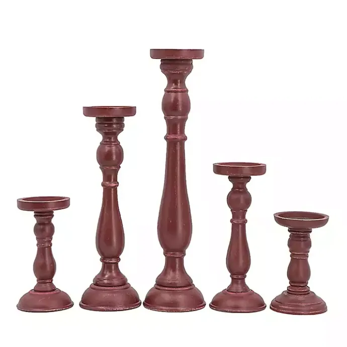 Add a bit of drama and elegance to any space with these Red Wood Spindle Taper Candle Holders! These candle holders are crafted of wood with a deep red finish in varying heights, perfect for displaying together or around your home.