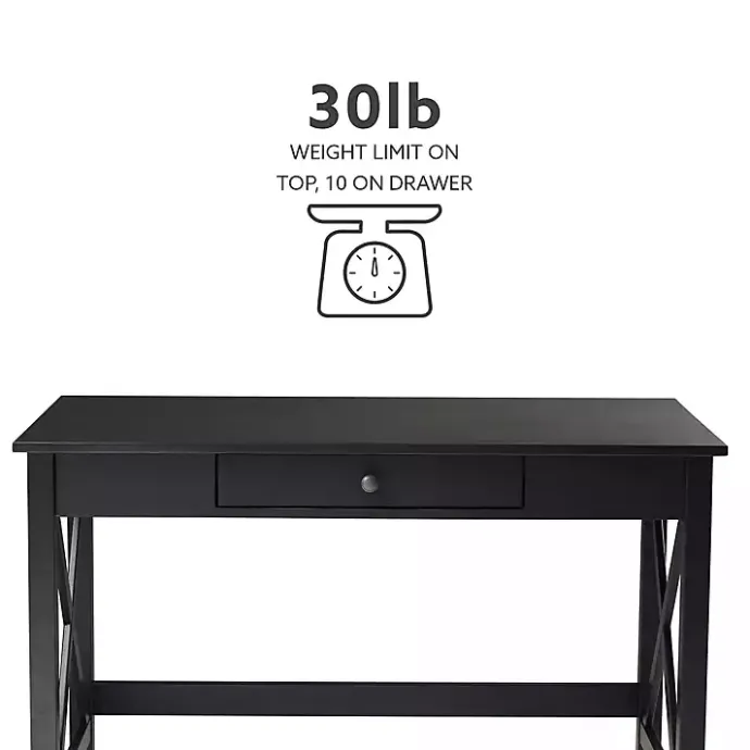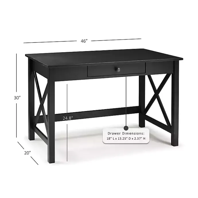 Create a modern farmhouse office setup using this Black Wood X-Sides Desk. Its neutral finish and traditional design brings a timeless element into your home.