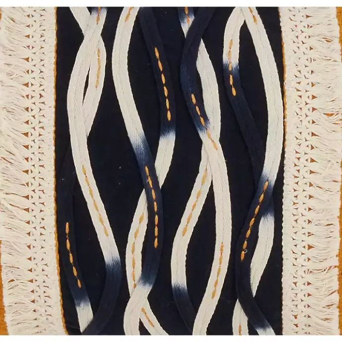 Revitalize your seating area with some bold colors and funky patterns! Our Yellow Wave Stitched Fringe Lumbar Pillow is perfect for an eclectic-styled living room.